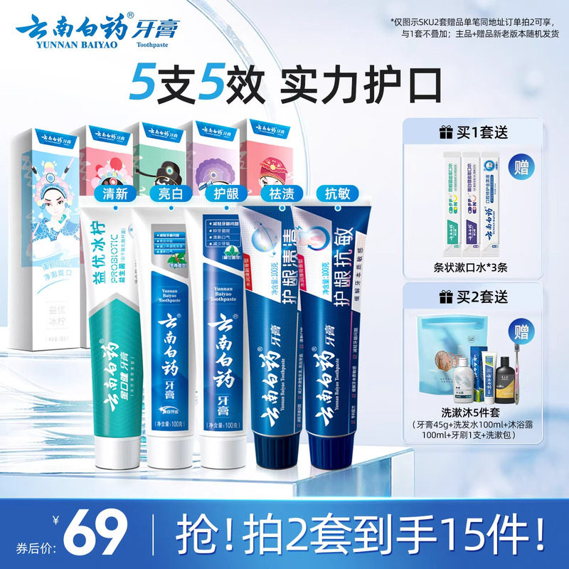 云南白药牙膏留兰益生菌组合110g清新护龈套装-下拉详情更优惠