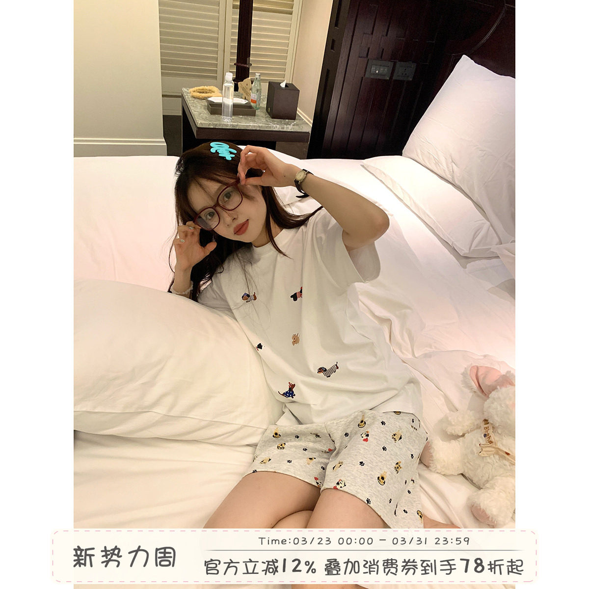 馨帮帮Homedress 卡通小狗印花短袖睡衣女款夏舒适休闲家居服套装