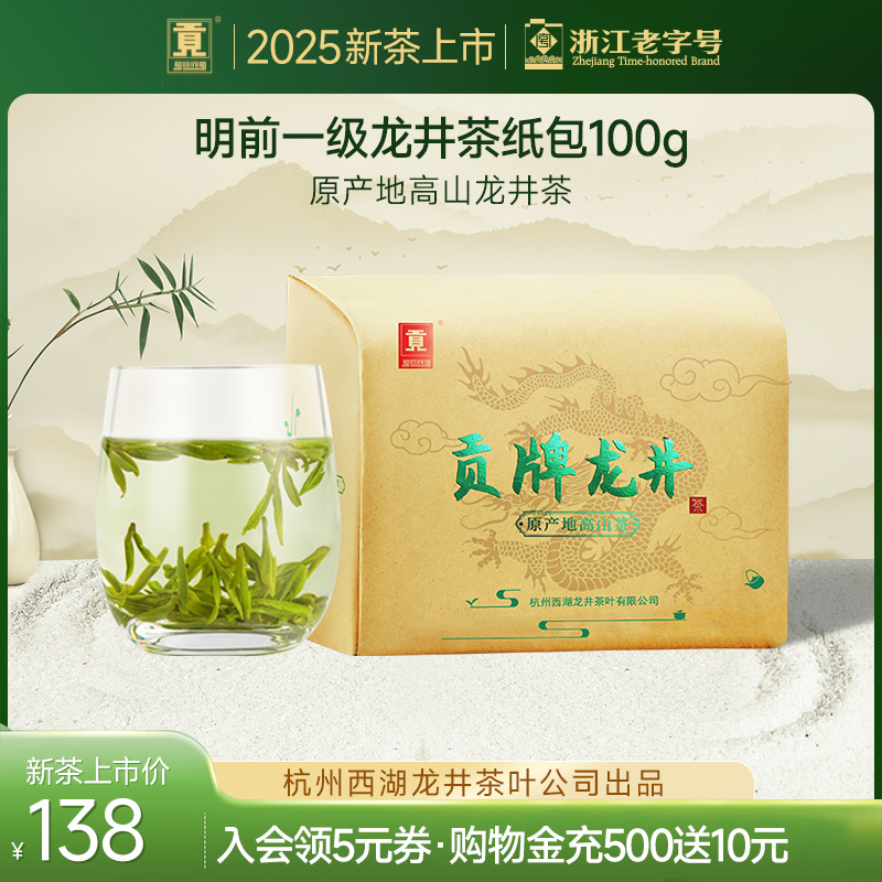 【2025新茶上市】贡牌明前一级龙井茶叶100g杭州西湖龙井茶叶公司