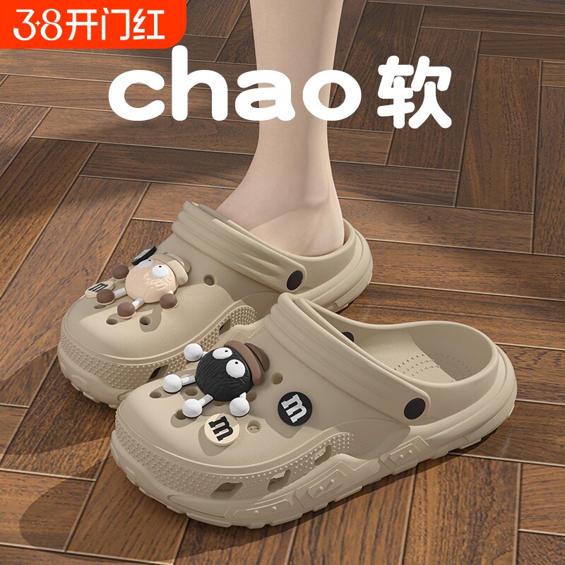防滑煤球洞洞鞋女卡通2025新款外穿旅行夏季厚底踩屎感两穿凉鞋女