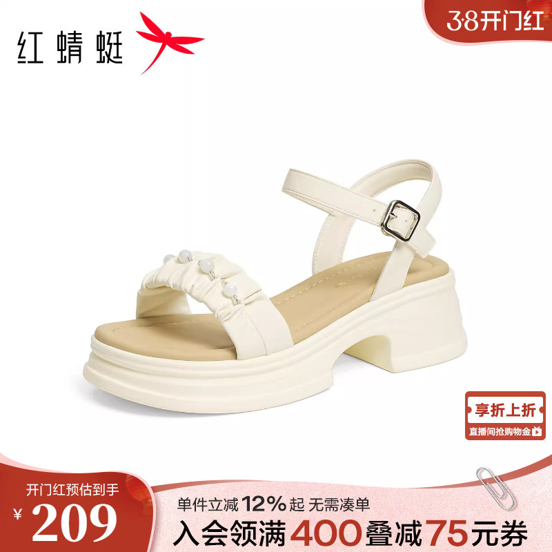 红蜻蜓休闲凉鞋2026夏季新款女凉鞋一字带凉鞋厚底舒适不累脚女鞋