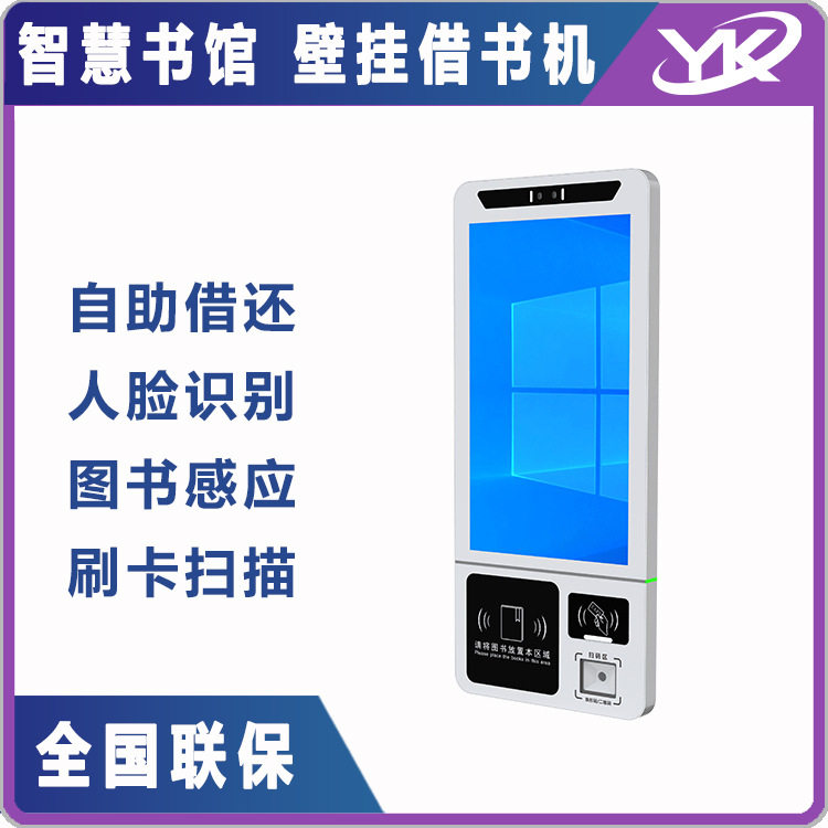 智慧图书馆壁挂触摸一体机人脸识别图书感应刷卡扫描自助借还书机
