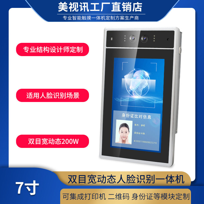 7寸安卓人脸识别宽动态双目摄像头壁挂触摸一体机可开发平板电脑