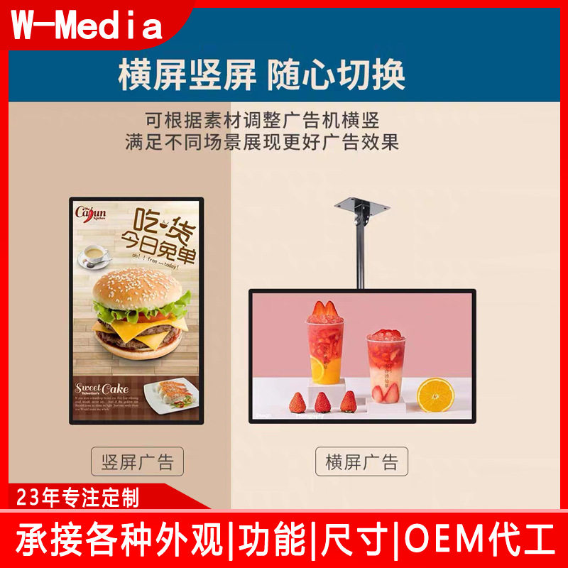 壁挂广告机奶茶店电梯超薄智能4K安卓触摸高清网络液晶显示屏竖播放器吊挂电视宣传一体32/43/55/65/75/100寸