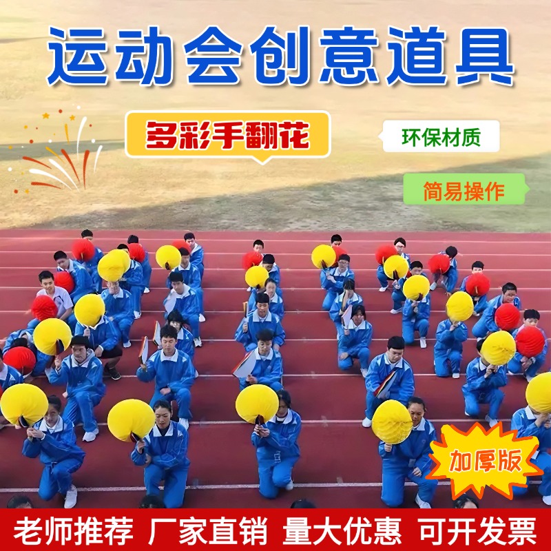 运动会道具手翻花变色扇子小学生开幕式入场手拿道具学校演出方阵