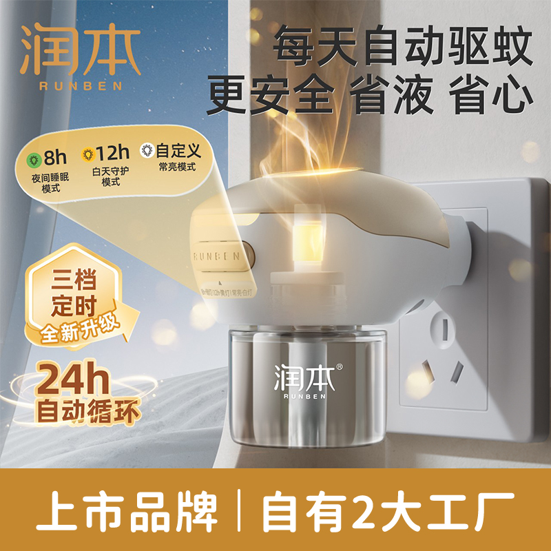 润本电热蚊香液补充液家用温和无味定时电蚊香器防蚊驱蚊液插电式