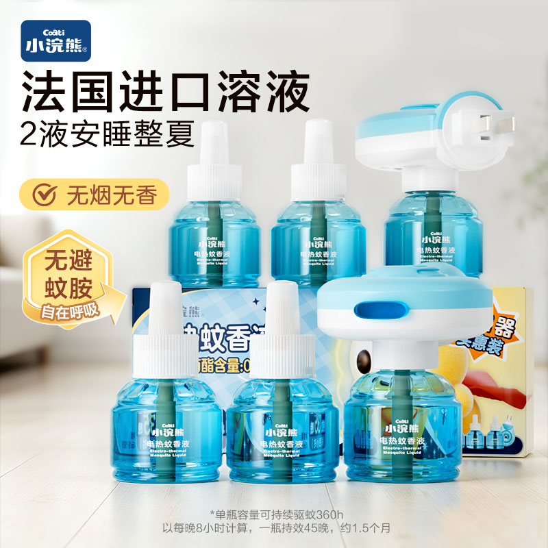 小浣熊电热蚊香液无味家用插电式驱蚊液体补充室内专用无烟无香装