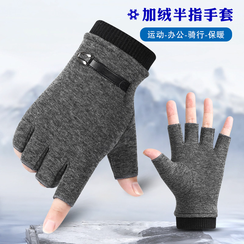 德绒半指男士骑行手套加绒保暖秋冬季开车游戏学生写字露指手套女