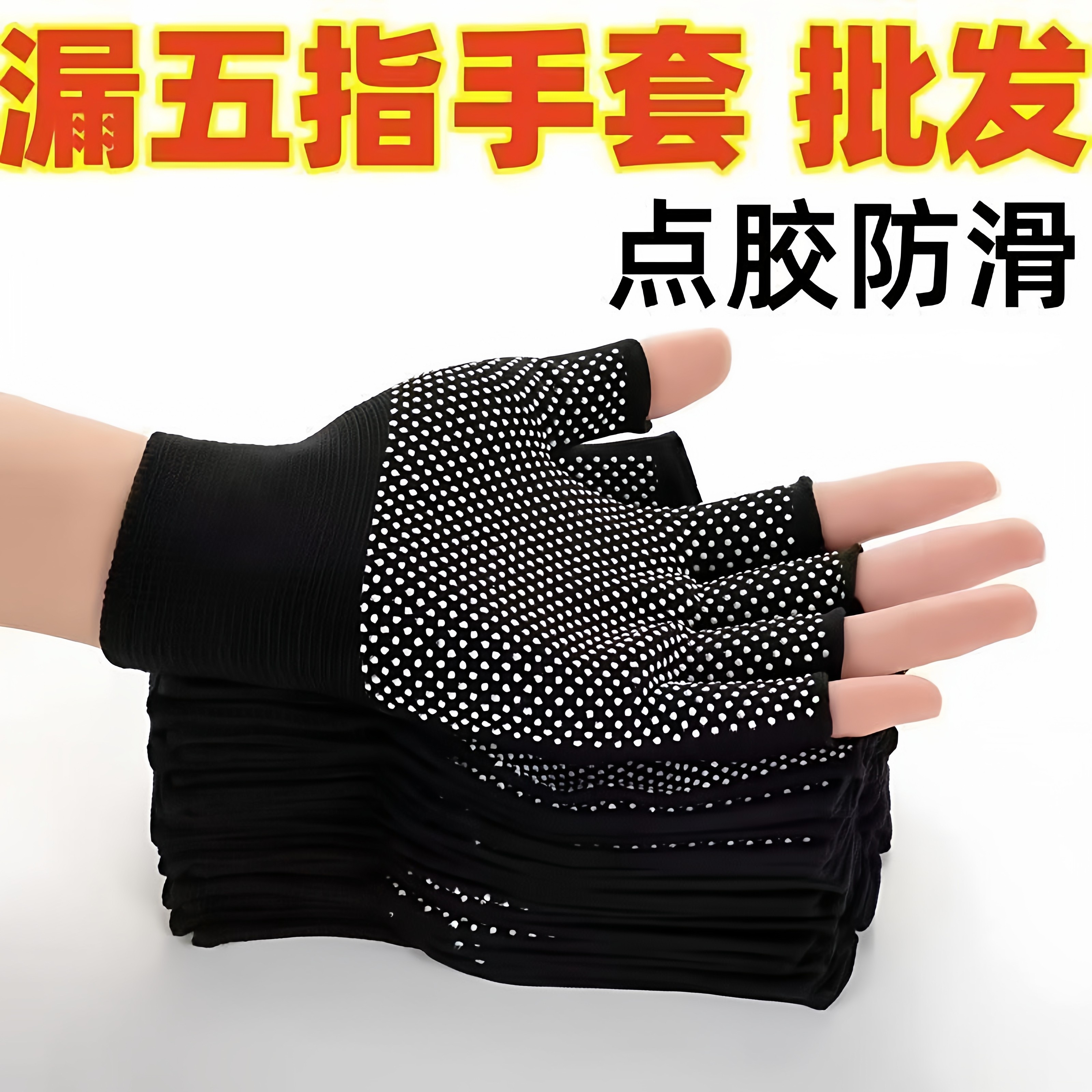 手套劳保工作耐磨防滑露二半指透气骑行钓鱼防晒快递干活打包分拣