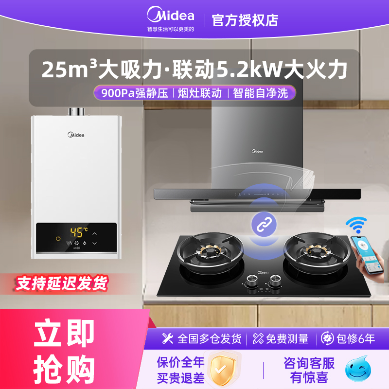美的抽油烟机燃气灶烟灶热水器消毒柜家用厨房大吸力顶吸智能套装