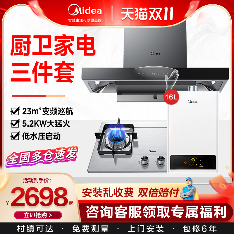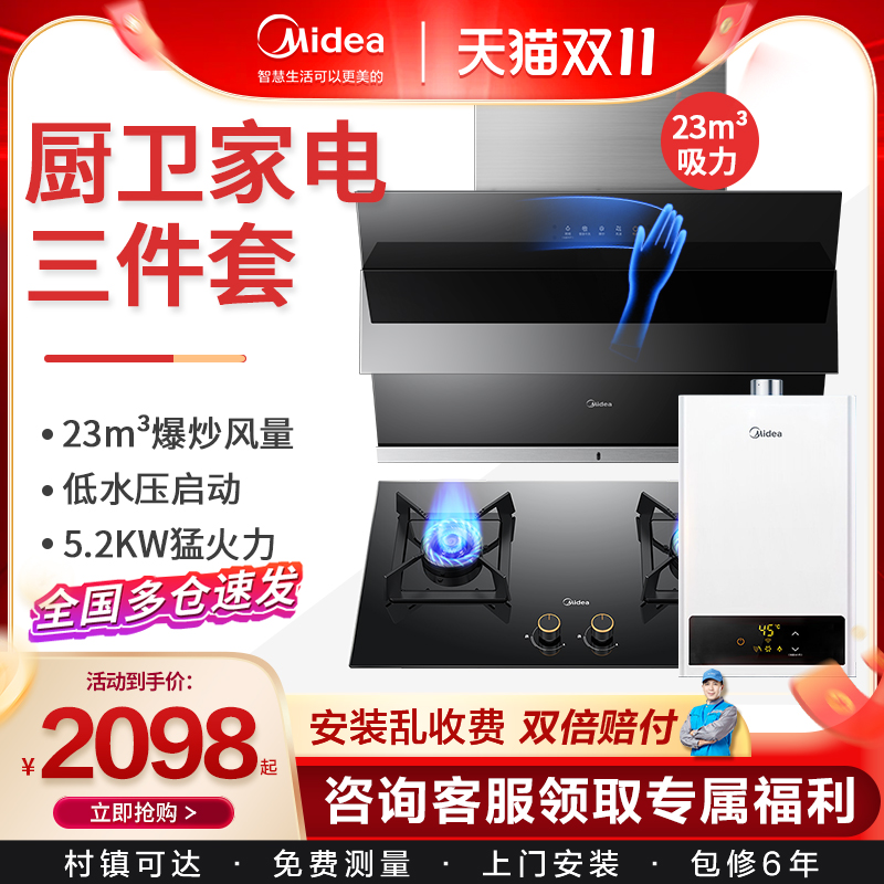 美的抽油烟机燃气灶套餐家用烟灶消毒柜热水器侧吸式厨房三件套装