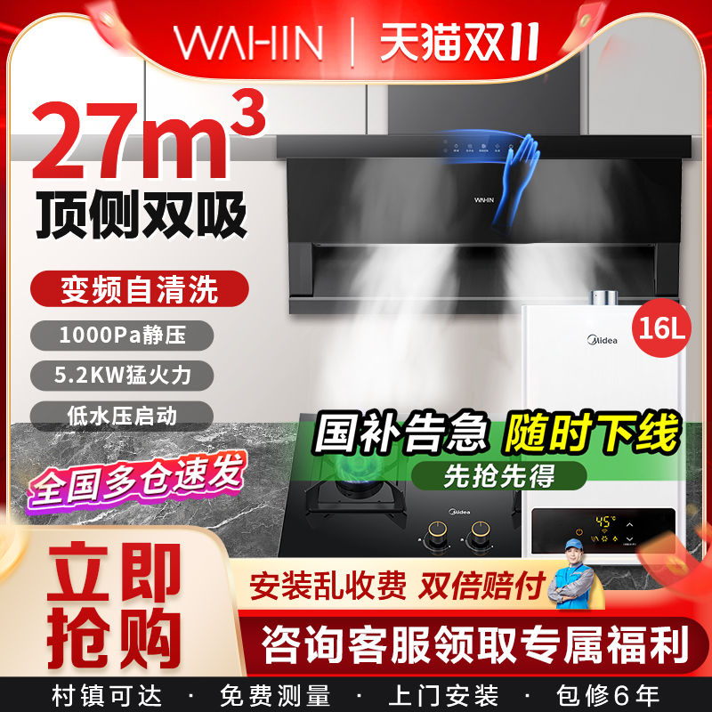 美的华凌抽油烟机燃气灶套餐顶侧双吸变频烟灶热水器厨房三件套装