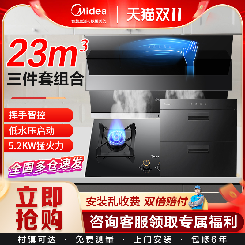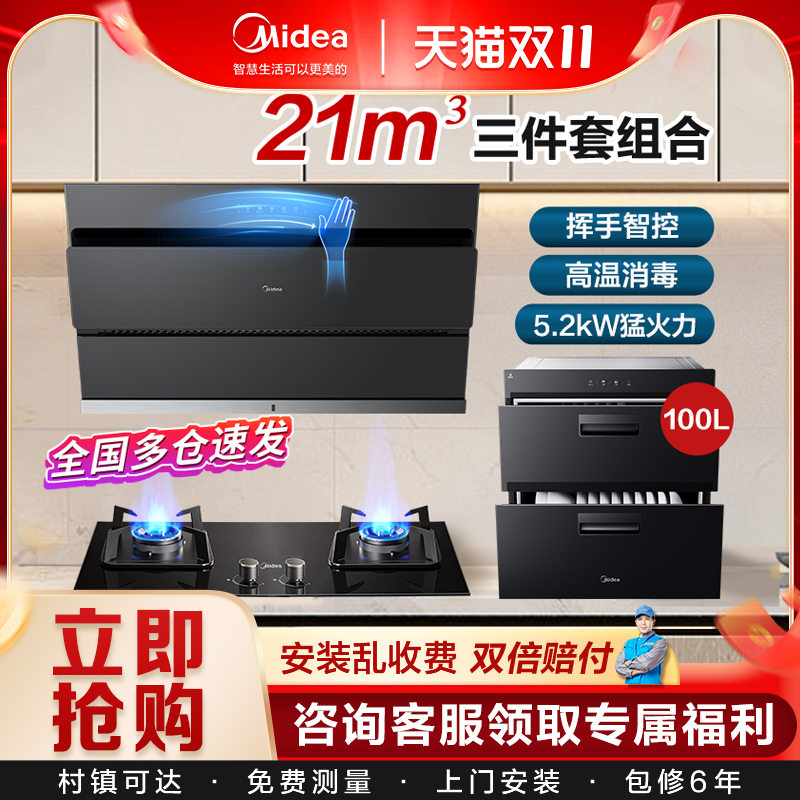 美的抽油烟机燃气灶套装烟灶热消毒热水器柜家用厨房组合三件套餐