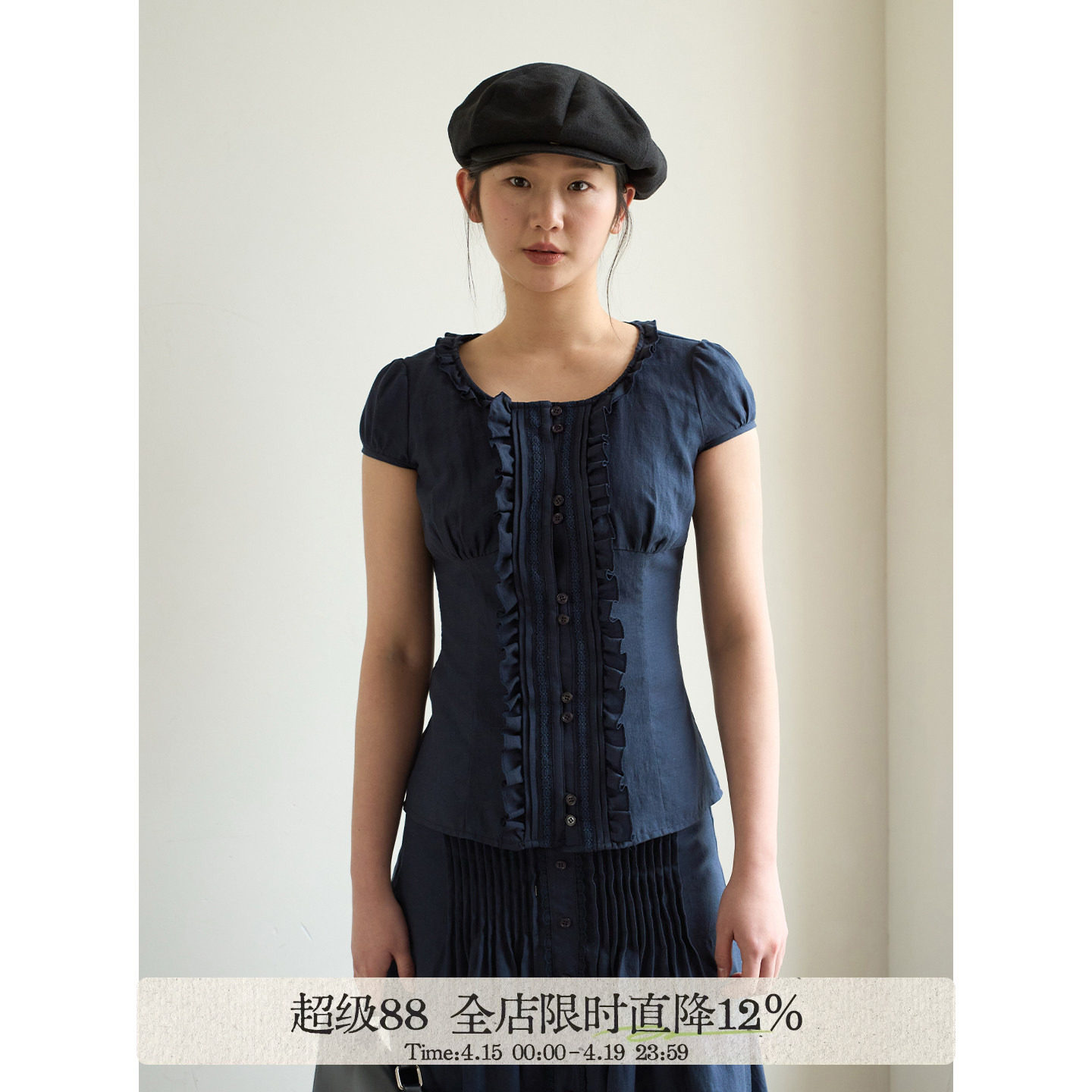 「 凌鸦ILNya 」差池_黑 褶皱衬衫裙 优雅宫廷风修身中长款衬衫