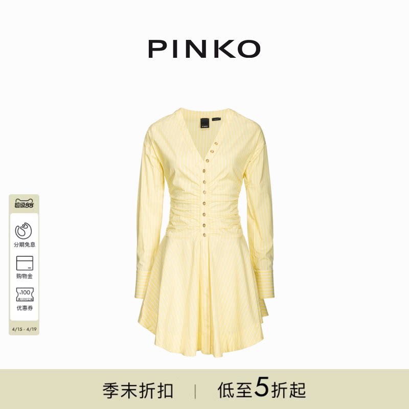 PINKO女士通勤条纹修身褶皱微喇衬衫式短款连衣裙102773A1PF
