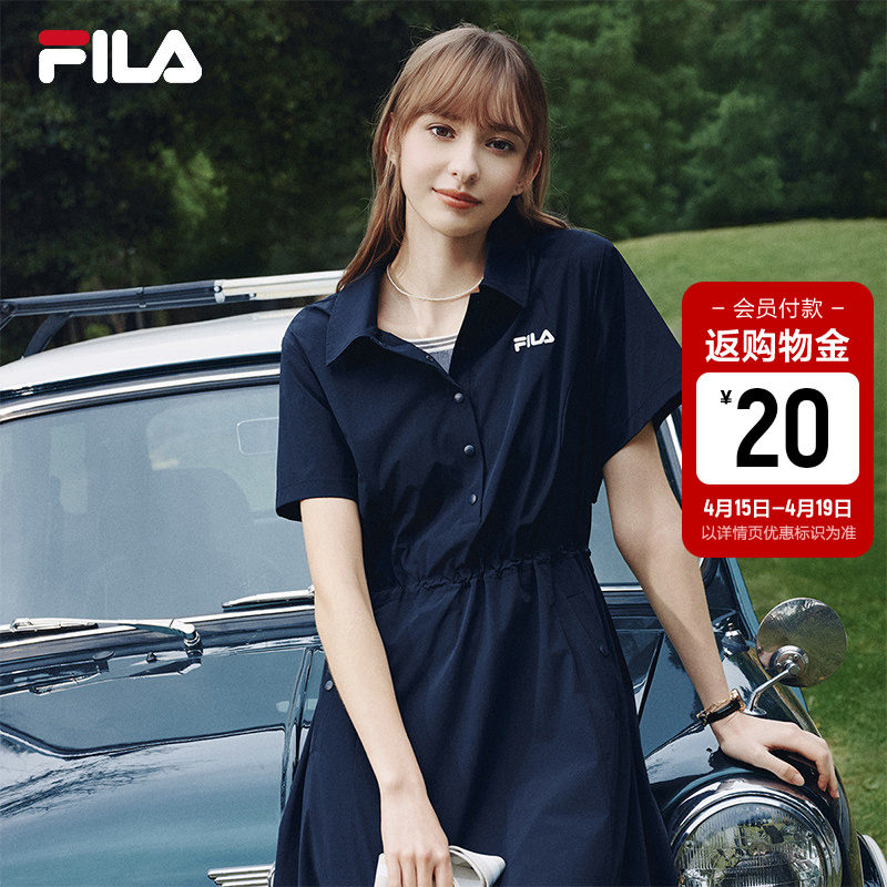 FILA斐乐官方女梭织连衣裙2026夏新款防晒凉感工装收腰修身衬衫裙