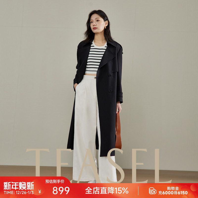 TEASEL「精致翘楚」高支高密斗篷式气场全开经典双排扣长款风衣