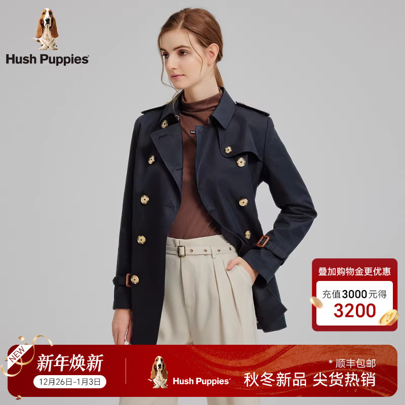 【经典斜纹面料】暇步士女装秋季收腰翻领双排扣风衣气质通勤外套