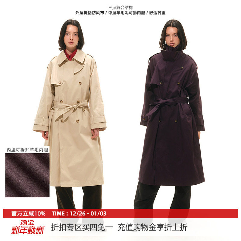 DOSORDONTS 经典廓形棉感双排扣可拆卸羊毛呢内胆重工腰带长风衣