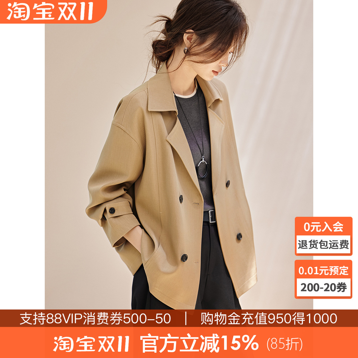 范洛Fano 经典摩登活页廓形双排扣垂感短风衣外套女小个子2025秋