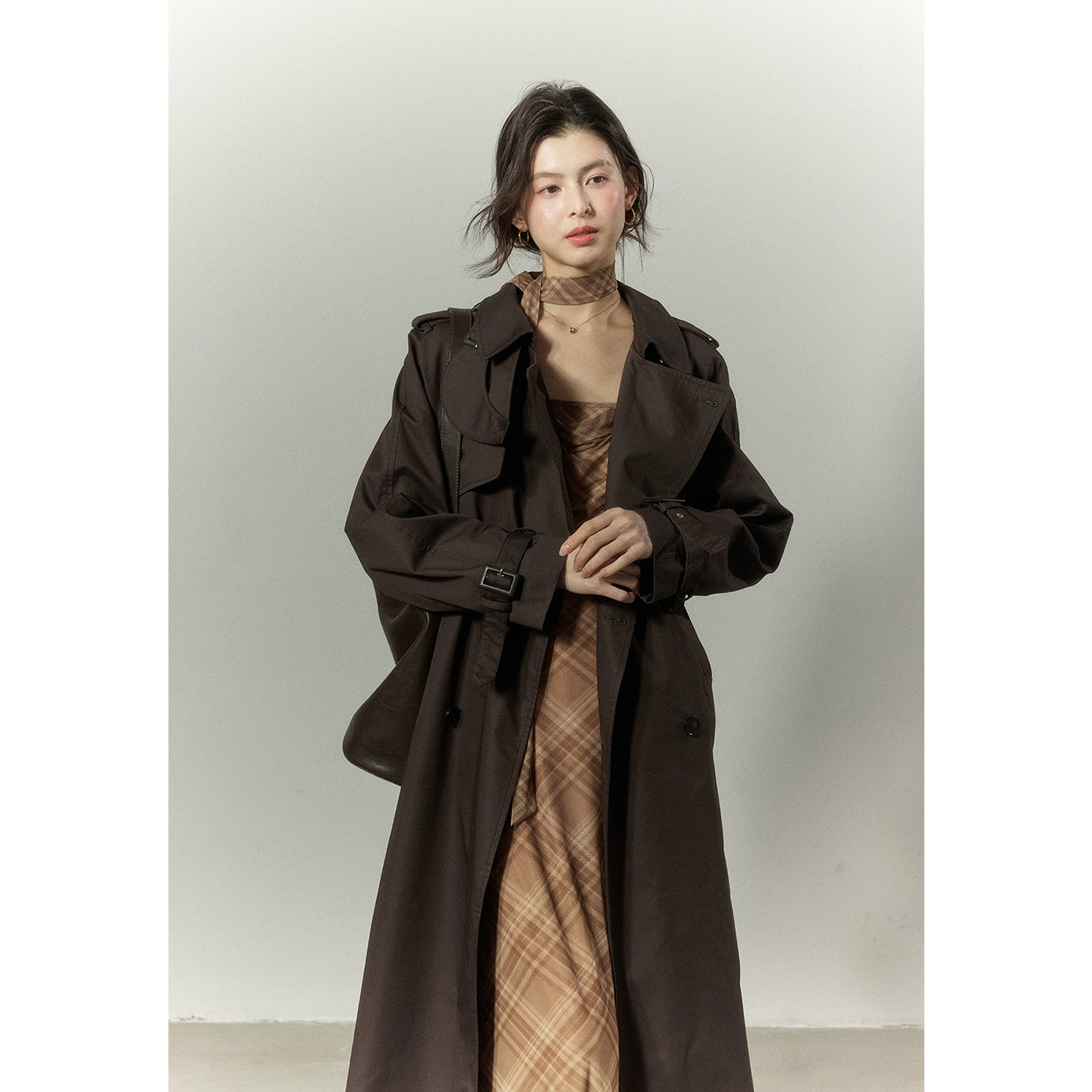 FBB WORKS 巴黎旧梦经典廓形大翻领双排扣中长款气质风衣外套女