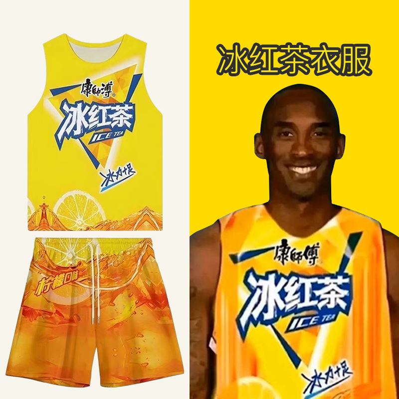 科比同款劳老牢大冰红茶衣服套装男夏季薄款T恤背心短袖篮球恶搞
