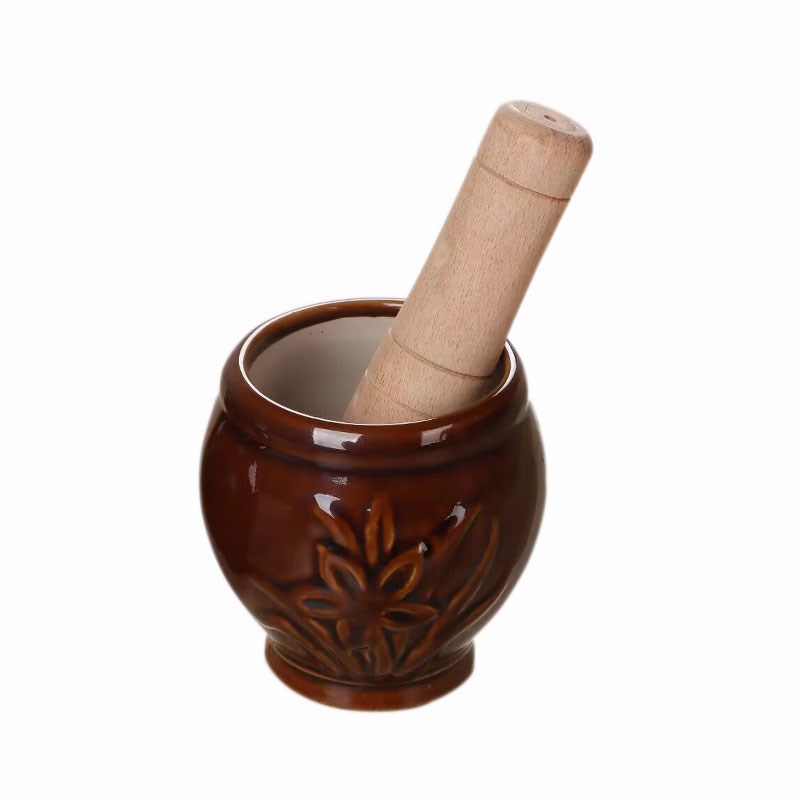 捣蒜器石臼家用陶瓷蒜缸捣蒜罐加厚蒜臼子蒜蓉器木研磨大蒜压蒜器
