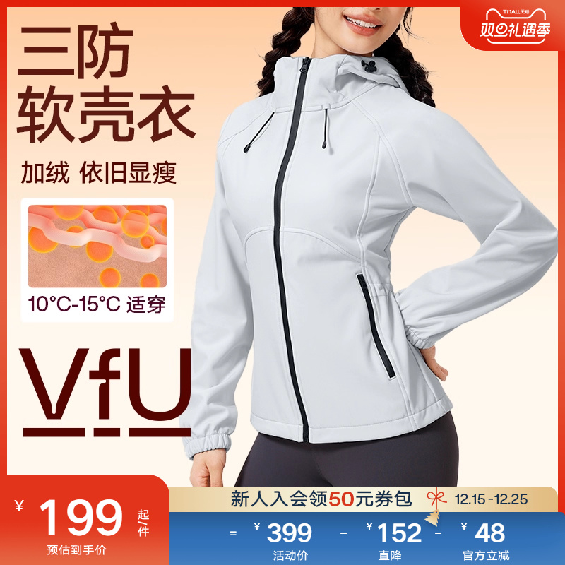 VfU三防软壳衣运动上衣女防风防水防污外套秋冬夹克户外健身跑步