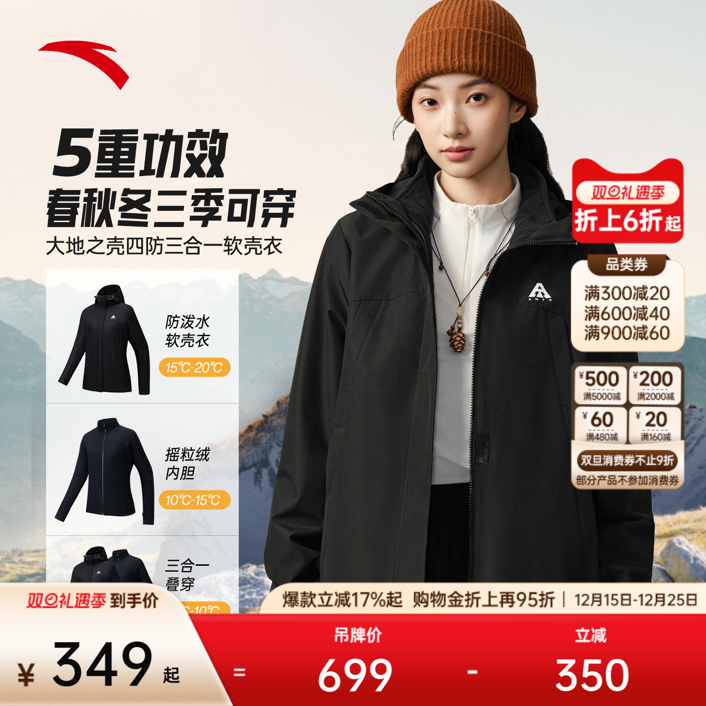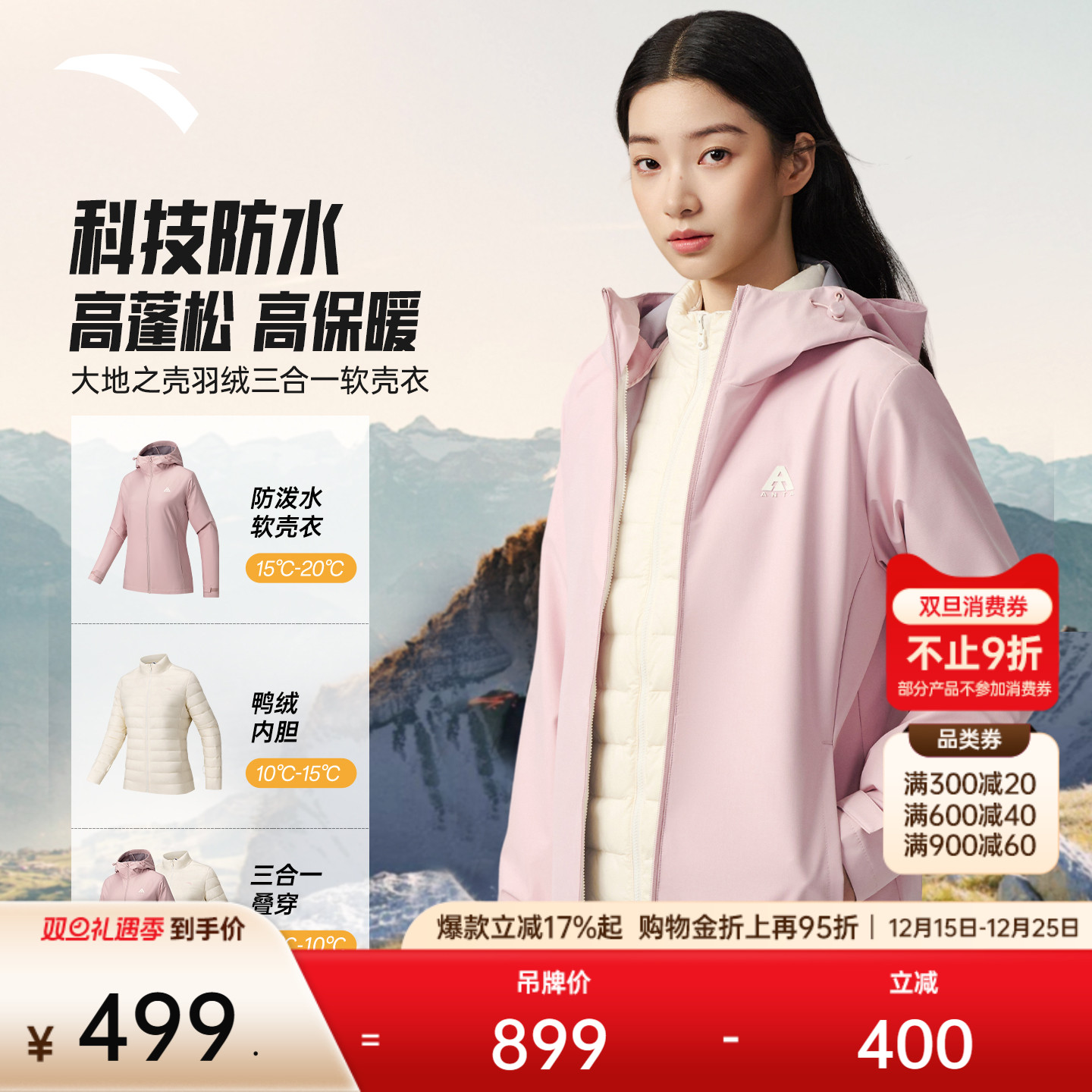 安踏羽绒三合一软壳衣丨大地之壳内胆羽绒服外套女士防泼水两件套