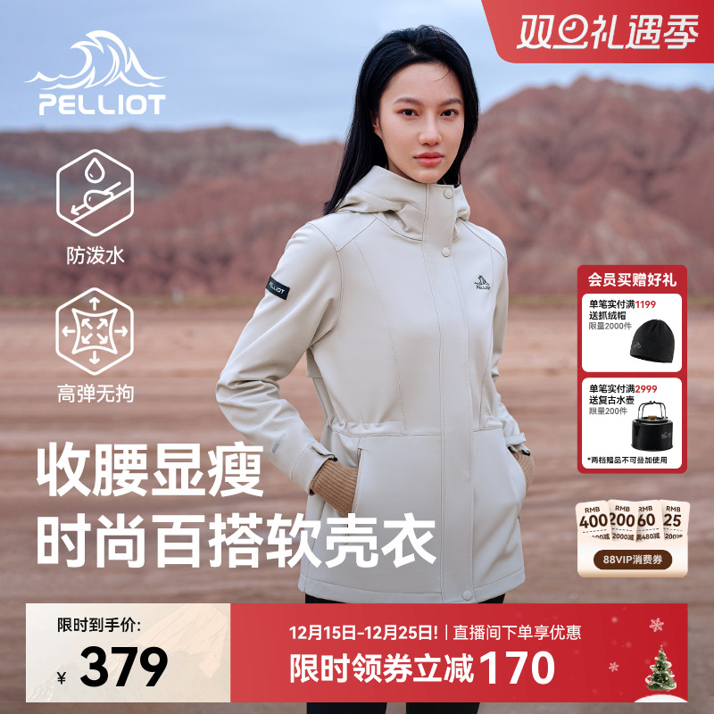 伯希和户外软壳衣女款防风防水登山服中长款收腰旅行休闲运动风衣