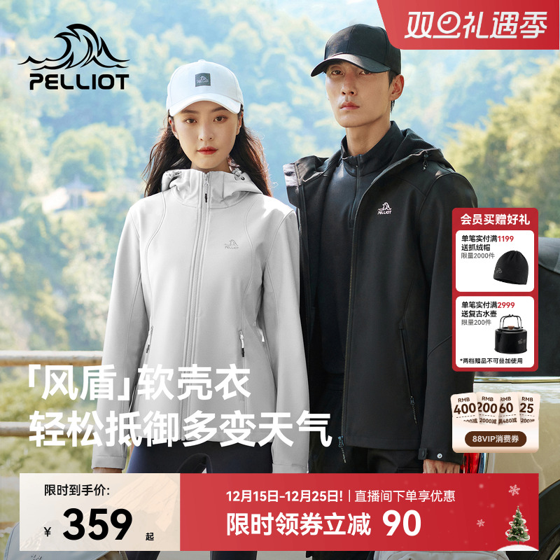 伯希和软壳衣女户外防风防水保暖冲锋衣外套男运动休闲加绒登山服