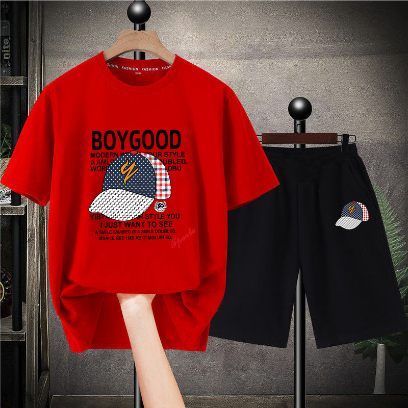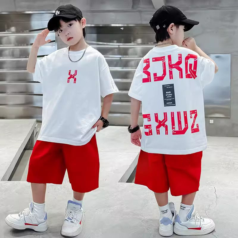 2025纯棉夏季童装T恤男童夏装休闲运动中大童两件套装上衣短裤潮