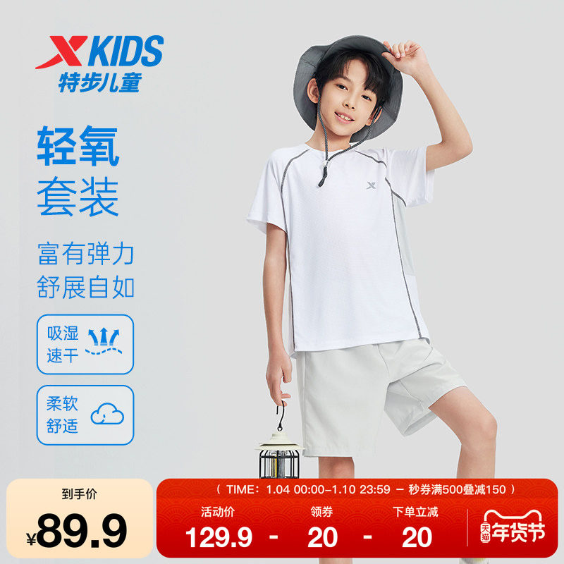 特步童装男童夏季新款拼色速干网球套装两件套中大童运动针织套装