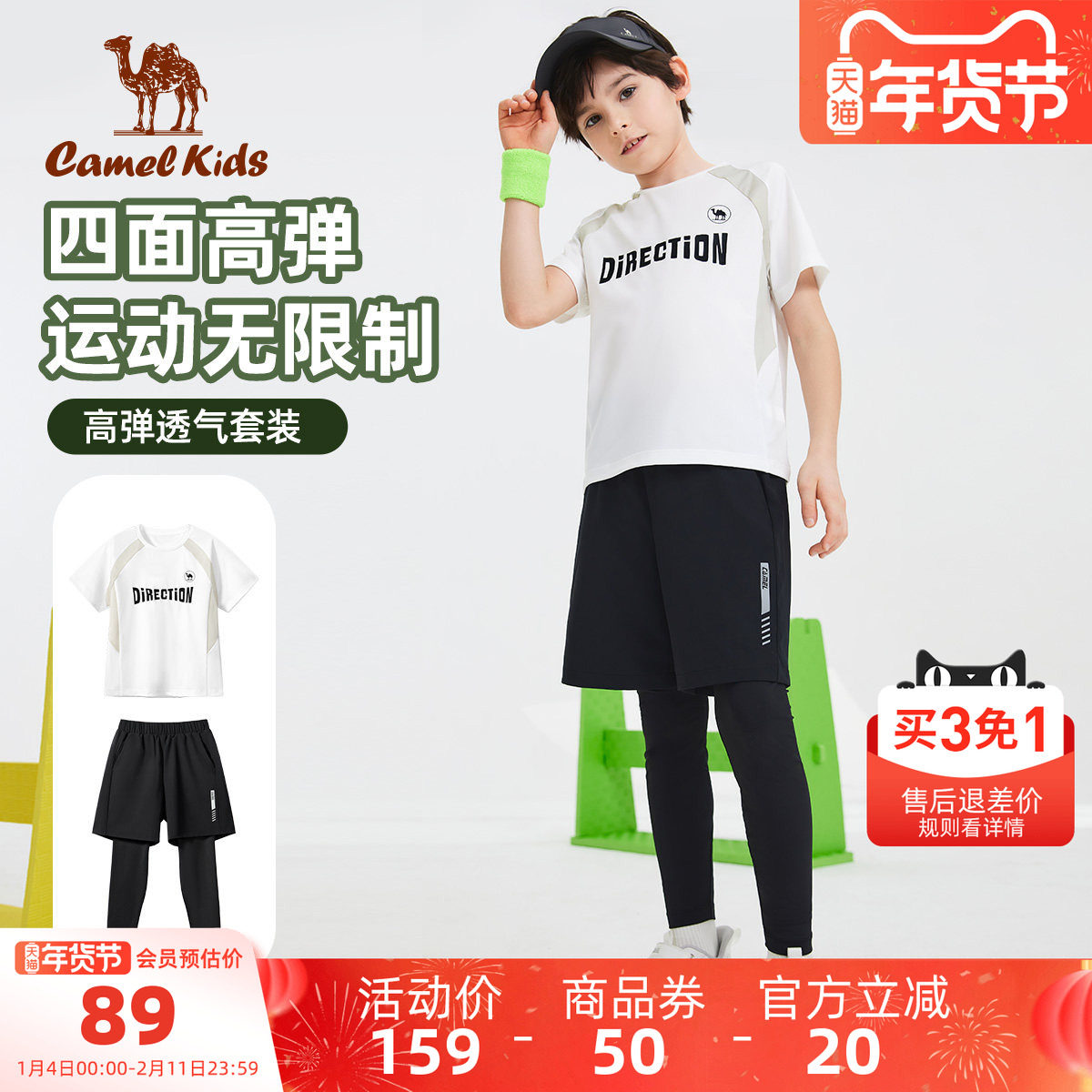 【清仓】骆驼男童短袖两件套夏季休闲中大童套装薄款儿童运动T恤