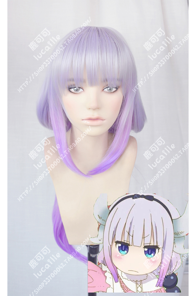 小林家的妹抖龙康娜 长大银紫渐变紫红双马尾齐刘海cosplay假发