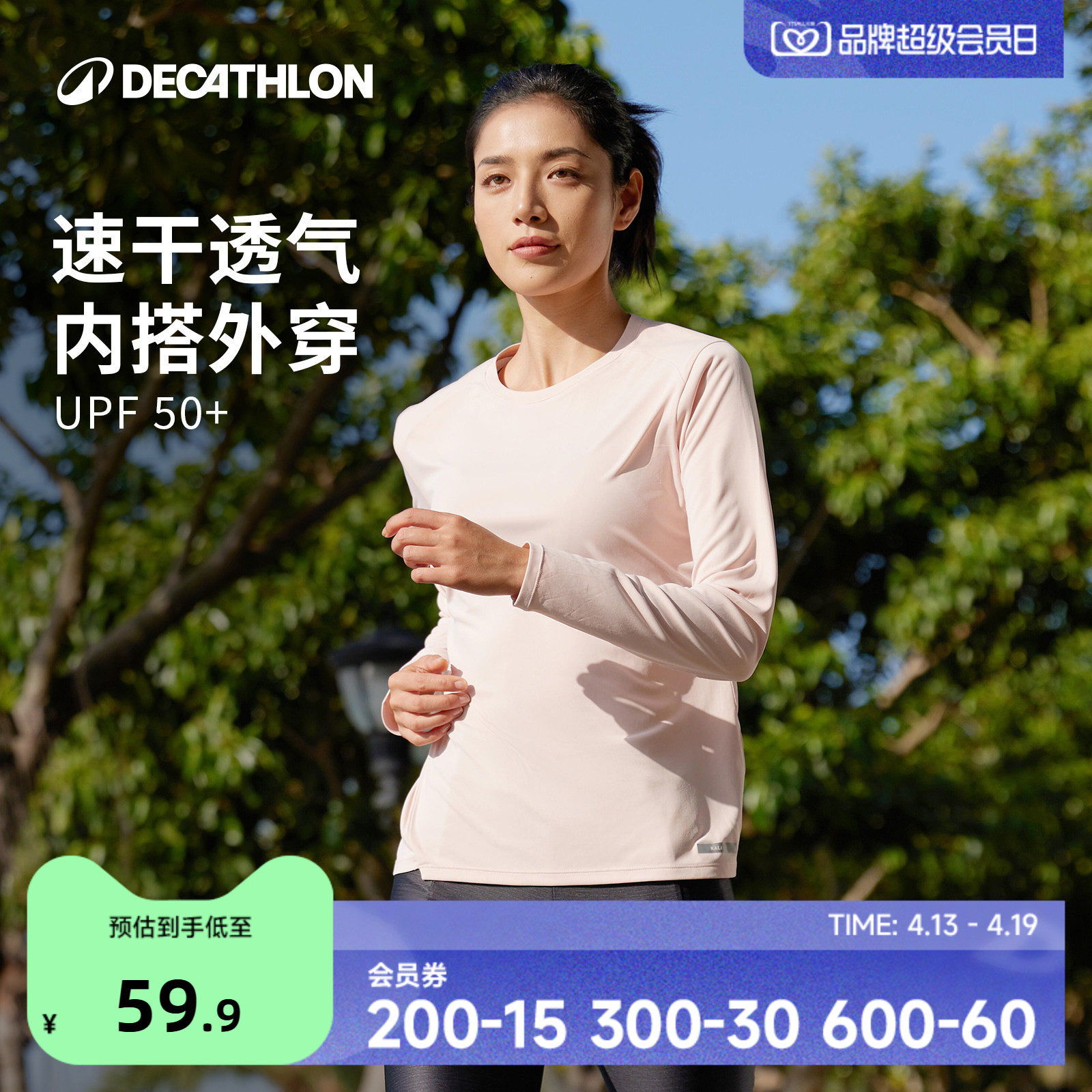 迪卡侬速干衣女长袖春夏户外登山跑步健身服透气防晒运动上衣RFP2