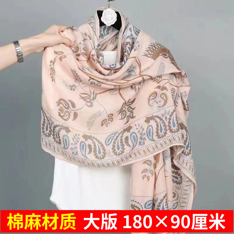 2025新款棉麻丝巾春秋款洋气时尚披肩围脖大牌百搭妈妈围巾冬季女