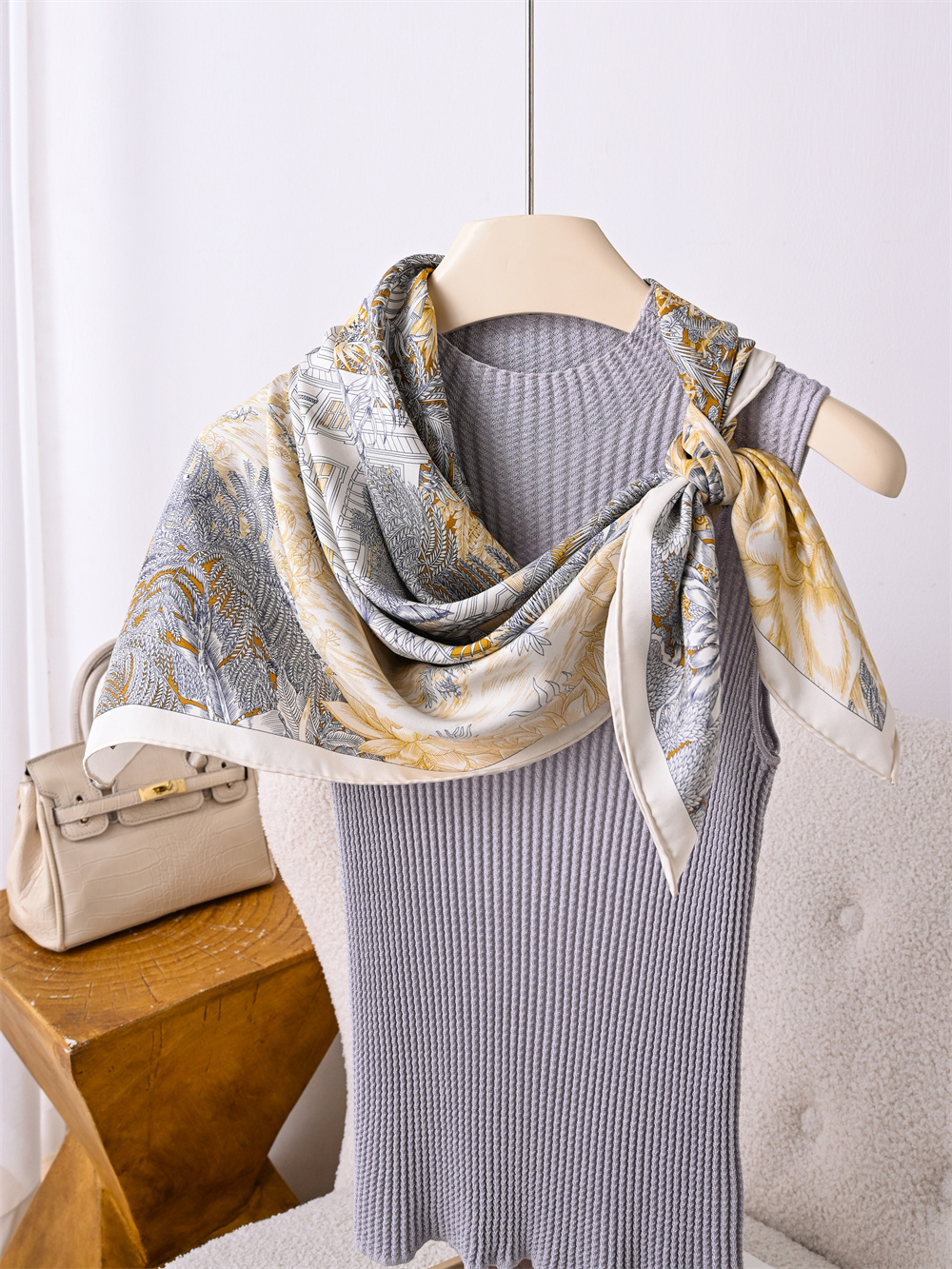 丝巾90*90法式植物花卉郁金香高级感大牌披肩防晒大方巾装饰领巾