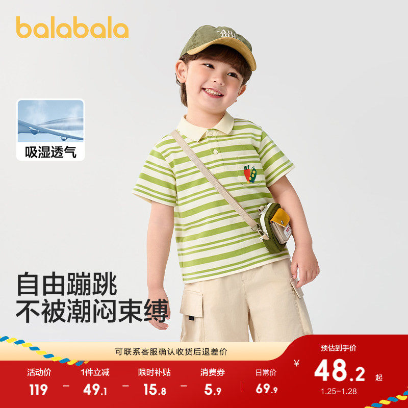 巴拉巴拉童装儿童短袖t恤2025夏款POLO衫男速干凉感休闲百搭上衣