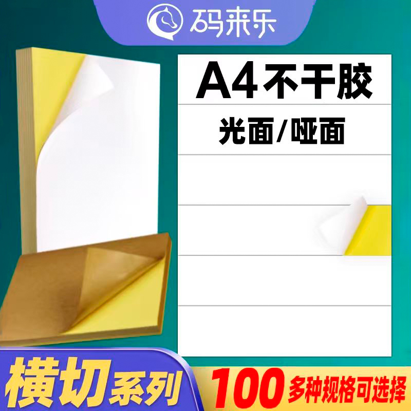 A4不干胶a4打印纸亮面100张内分切背胶不干胶标签纸办公室广告文秘玻璃自粘贴激光喷墨打印纸光面哑面贴纸