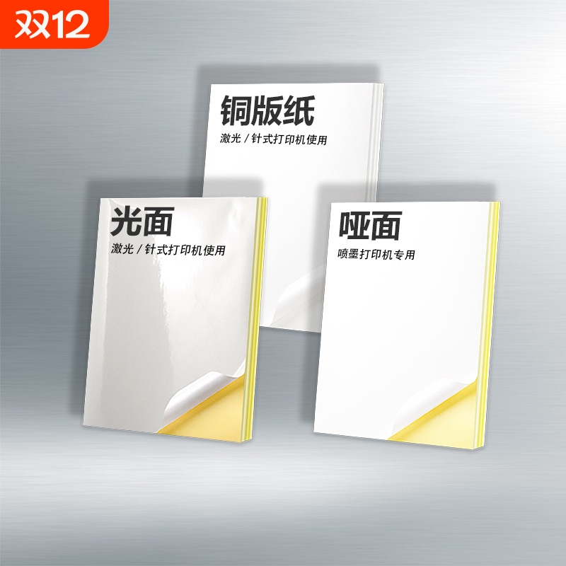A4不干胶打印纸100张背胶纸哑光标签贴纸激光喷墨亚光牛皮纸a4内分切割铜版彩色光面哑银透明合成防水姓名贴