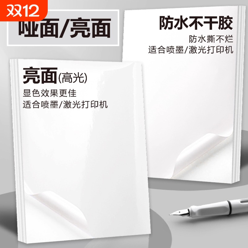 A4不干胶打印纸100张亮面内分切割打印贴纸背胶纸哑光不干胶标签贴纸自粘贴激光喷墨彩色铜版亚面光面可定制