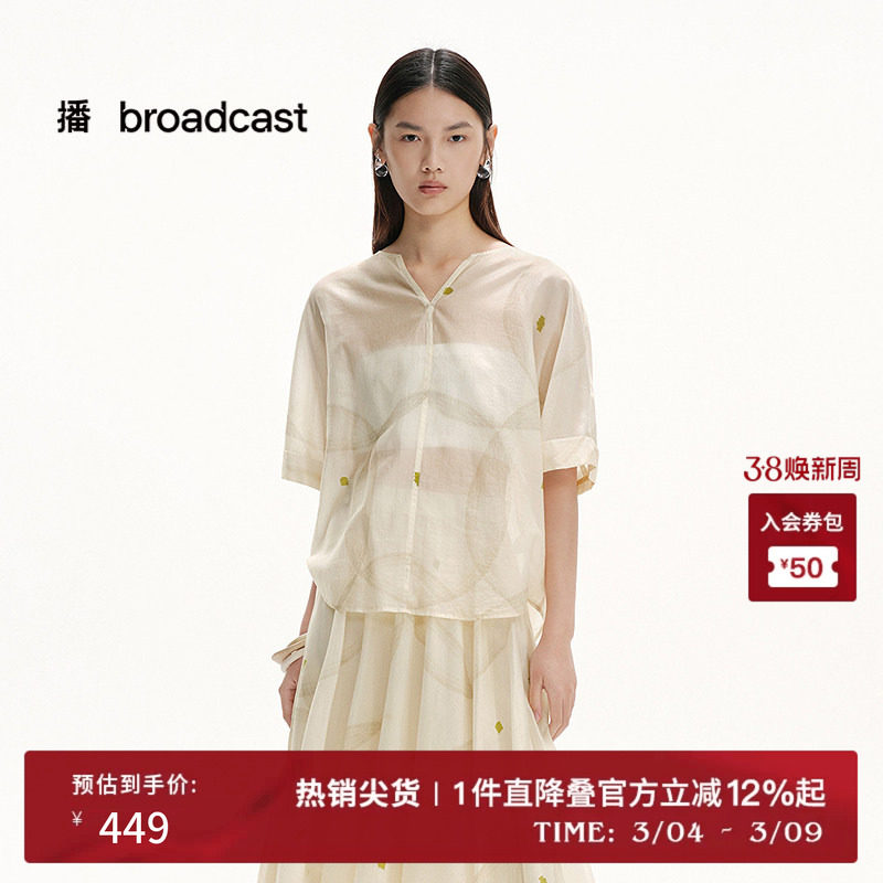 播商场同款雪纺印花短袖衬衫女夏季新款独特气质小衫BDS2HD2003
