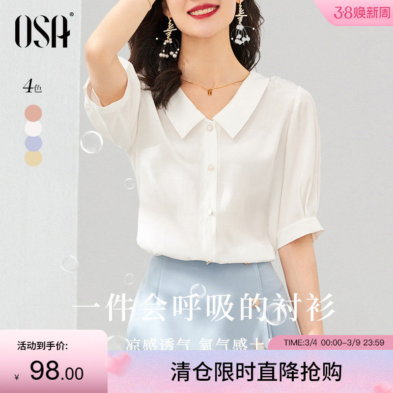 OSA欧莎女士白色短袖雪纺衬衫上衣设计感小众衬衣夏季2025年新款