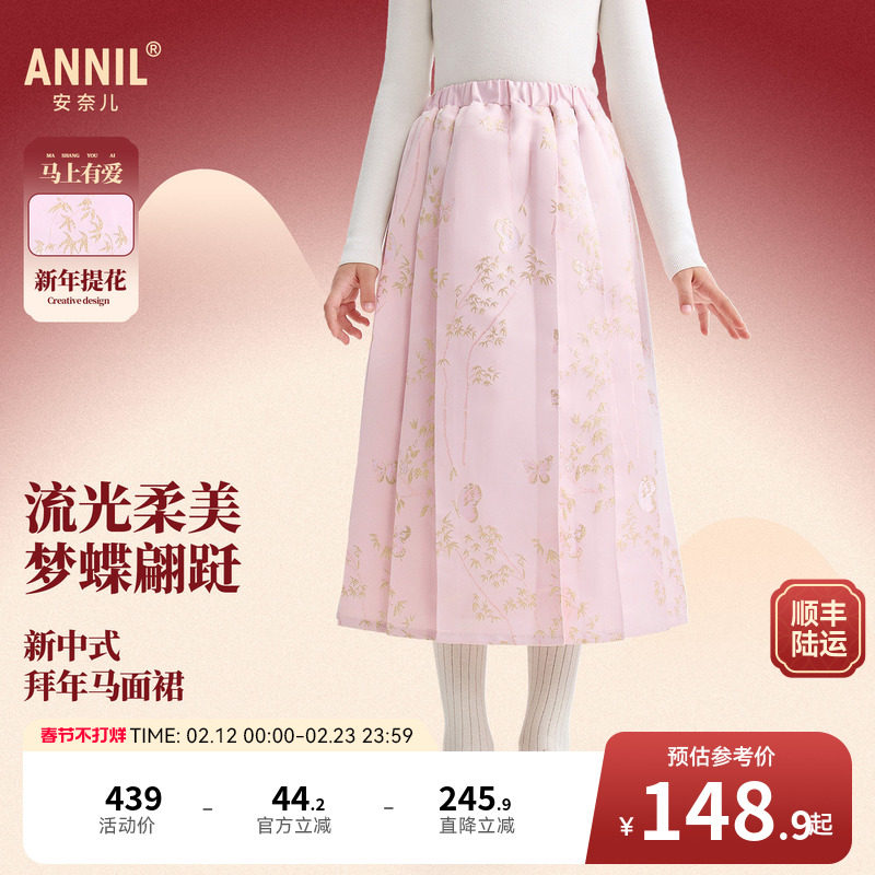 安奈儿童装女童半身裙2026春新款浅粉色中长复古新式国风马面裙子
