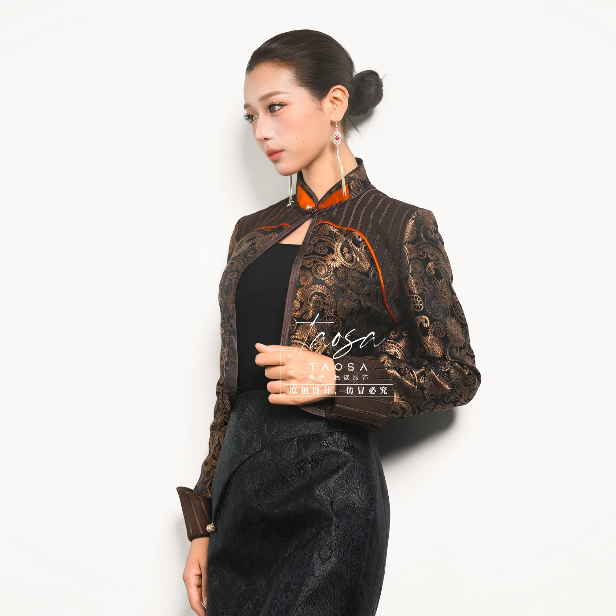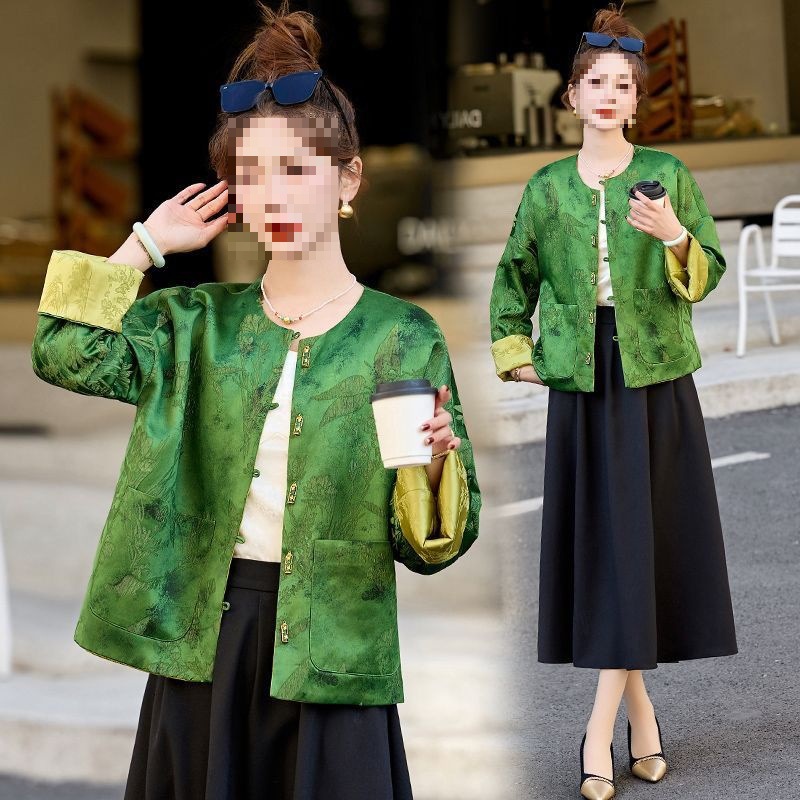 2025秋款中式国风盘扣重工刺绣提花缎面短外套复古民族风女装上衣