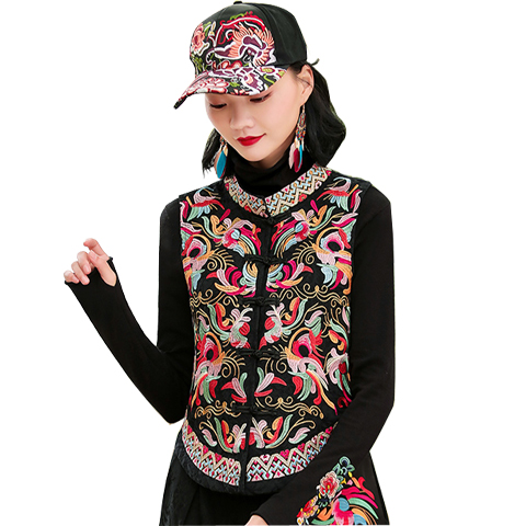 春装新中式民族风复古重工刺绣背心马甲女修身坎肩马夹上衣短外套