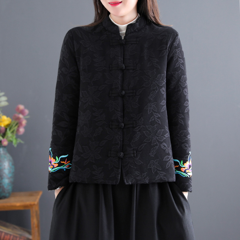 民族风刺绣盘扣唐装棉袄中国风女装秋冬大码上衣棉麻棉衣女短外套