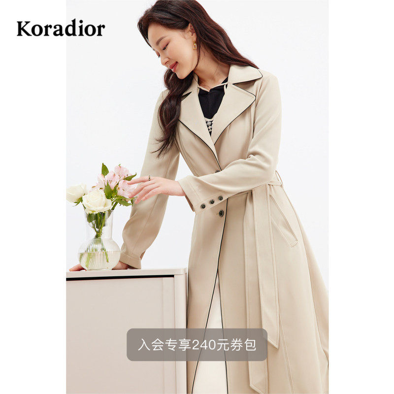 koradior珂莱蒂尔通勤百搭中长款收腰显瘦西装领风衣外套