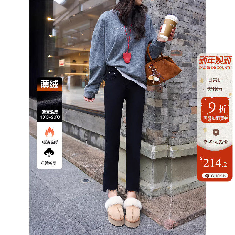 - 牛仔裤九分裤女 小脚 显瘦 高腰